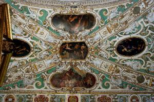 Ciclo di dipinti posti a ornare la volta della prima campata, racchiusi entro cornici a stucco.