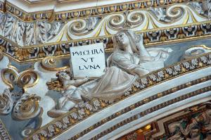 - NOTIZIE STORICO CRITICHE Le figurette di sibille poste nei piccoli pennacchi degli archi sono state realizzate da Lorenzo Porta, stuccatore originario di Osteno, sul lago di Lugano, tra il 1615 e il 1616: in quegli anni, infatti, i libri contabili della Basilica registrano pagamenti per i lavori di decorazione che interessarono l'intera area della cupola a Lorenzo, appunto, e ai figli Girolamo e Giovanni Battista (Cortesi Bosco, in "I pittori bergamaschi...Il Seicento", vol. II, pp. 92-94, nota 5)