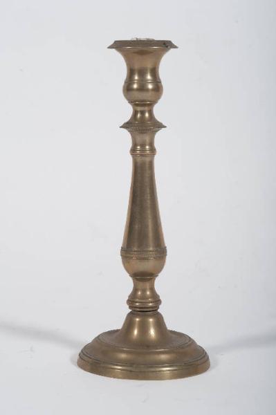 - NOTIZIE STORICO CRITICHE Nella loro essenzialità formale (piede circolare e fusto a balaustro) e nella mancanza di decorazioni, la coppia di candelieri in esame, di gusto ancora neoclassico, rispecchia i modi di una produzione locale della seconda metà dell'Ottocento.