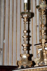 - NOTIZIE STORICO CRITICHE Si tratta di una tipologia molto ricorrente nel Settecento, poi ripresa e prodotta industrialmente all'inizio del XX secolo. Nella basilica è conservata anche una croce da altare stilisticamente legata alla muta di candelieri in esame (num. foto 1023).