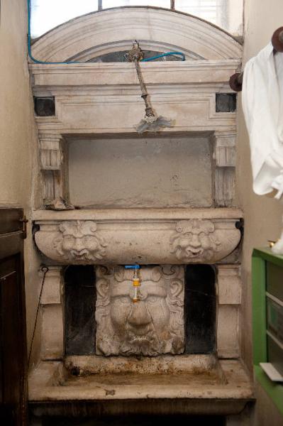 Lavabo da sacrestia a due vasche decorate da mascheroni.