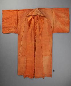 Sopravveste maschile estiva in seta di colore rosso aranciato.