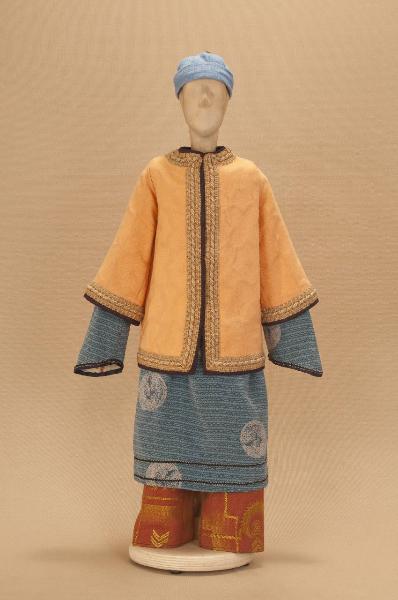 Costume da popolano cinese composto da pantaloni, veste, giubba e cappello.