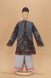 Costume da popolano cinese composto da pantaloni, veste, giubba e cappello.