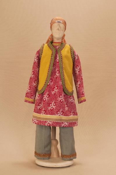 Costume da popolana cinese composto da pantaloni, veste, fazzoletto per testa e giubba.