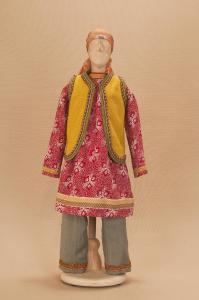 - NOTIZIE STORICO CRITICHE Il costume, che si completa con scarpe, è stato realizzato per "La Lampada di Aladino", uno spettacolo che nasce come riduzione teatrale per marionette nel 1994. L¿argomento è tratto dalla fiaba "Aladino e la lampada meravigliosa", appendice della raccolta "Le Mille e Una Notte".\nLo spettacolo di Eugenio Monti Colla, andato in scena in prima mondiale al Festival di Spoleto con musiche di Danilo Lorenzini, snoda il racconto in tredici quadri di ambientazione cinese come indicato nella fiaba d¿origine e narra l¿evoluzione del protagonista da giovinetto a uomo maturo attraverso vicende di carattere fantastico e simbolico.