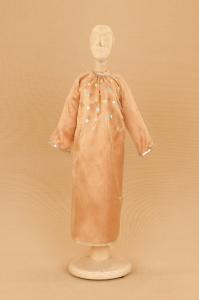 - NOTIZIE STORICO CRITICHE Il costume, che si completa con un copricapo, è stato realizzato per lo spettacolo "Cenerentola", azione coreografico-fantastica in 8 quadri, che trae origine dalla fiaba di Charles Perrault, di cui segue fedelmente la tessitura e lo svolgimento, con struttura di azione mimica su tema musicale. Scritta da Carlo II Colla nel 1906, fu una delle prime fiabe rappresentate dalla Compagnia Carlo Colla e Figli al suo ingresso al Teatro Gerolamo come teatro stabile, fino all¿ultima rappresentazione avvenuta il 28 Aprile 1957. Le scene furono realizzate da Francesco Bosso (1864-1933, realizzatore di numerose scenografie per il Teatro Regio di Torino e di alcuni affreschi nel Duomo di Vercelli, sua città natale), da Achille Lualdi (1869- anni ¿50); la musica da Carlo Durando. \nLo spettacolo subì, col passare del tempo, alcune modifiche: la Matrigna austera e severa venne sostituita con un personaggio di bassa statura, corpulento, con tratti fisionomici marcati per attenuare in forma ironica l¿immagine negativa del ruolo (nel 1982 assunse le fattezze dell¿attore Oliver Hardy); i costumi vennero sostituiti negli anni ¿20 da ricchi abiti realizzati da Caramba, il quale utilizzò tessuti dipinti col metodo Fortuny. Nel 1971, quando "Cenerentola" fu presentato al Festival di Spoleto, alcuni elementi sartoriali furono restaurati e rinnovati da Angela Colla. Nel 1987, con l¿andata in scena a Parigi, vennero rifatti numerosi costumi, seguendo la linea di Caramba, e numerose teste. Infine, nel 2003, vennero realizzate alcune scenografie da Franco Citterio. Negli ultimi anni lo spettacolo "Cenerentola" è stato rappresentato in vari teatri di Italia, d¿Europa, arrivando anche negli Stati Uniti d¿America.