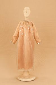 - NOTIZIE STORICO CRITICHE Il costume, che si completa con un copricapo, è stato realizzato per lo spettacolo "Cenerentola", azione coreografico-fantastica in 8 quadri, che trae origine dalla fiaba di Charles Perrault, di cui segue fedelmente la tessitura e lo svolgimento, con struttura di azione mimica su tema musicale. Scritta da Carlo II Colla nel 1906, fu una delle prime fiabe rappresentate dalla Compagnia Carlo Colla e Figli al suo ingresso al Teatro Gerolamo come teatro stabile, fino all¿ultima rappresentazione avvenuta il 28 Aprile 1957. Le scene furono realizzate da Francesco Bosso (1864-1933, realizzatore di numerose scenografie per il Teatro Regio di Torino e di alcuni affreschi nel Duomo di Vercelli, sua città natale), da Achille Lualdi (1869- anni ¿50); la musica da Carlo Durando. \nLo spettacolo subì, col passare del tempo, alcune modifiche: la Matrigna austera e severa venne sostituita con un personaggio di bassa statura, corpulento, con tratti fisionomici marcati per attenuare in forma ironica l¿immagine negativa del ruolo (nel 1982 assunse le fattezze dell¿attore Oliver Hardy); i costumi vennero sostituiti negli anni ¿20 da ricchi abiti realizzati da Caramba, il quale utilizzò tessuti dipinti col metodo Fortuny. Nel 1971, quando "Cenerentola" fu presentato al Festival di Spoleto, alcuni elementi sartoriali furono restaurati e rinnovati da Angela Colla. Nel 1987, con l¿andata in scena a Parigi, vennero rifatti numerosi costumi, seguendo la linea di Caramba, e numerose teste. Infine, nel 2003, vennero realizzate alcune scenografie da Franco Citterio. Negli ultimi anni lo spettacolo "Cenerentola" è stato rappresentato in vari teatri di Italia, d¿Europa, arrivando anche negli Stati Uniti d¿America.