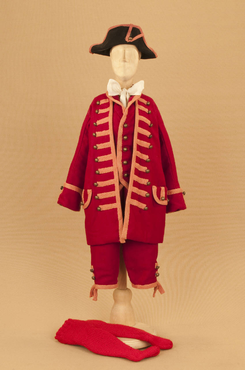 Livrea da servo per maschera settecentesca composta da pantaloni, gilet, giacca, cravatta, calze e cappello.