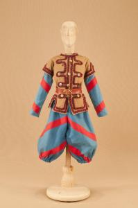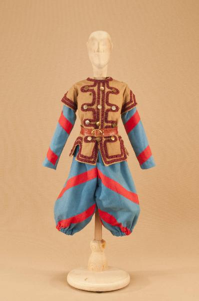 Costume militare di foggia seicentesca composto da calzoni, casacca e cintura.