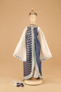 Costume da sacerdotessa di foggia egizia composto da veste, sopravveste, collo, cintura, sandali e diadema.