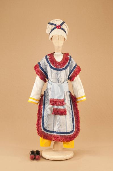 Costume folcloristico orientale composto da pantaloni, corpino, sopravveste, fusciacca, scarpe e turbante.