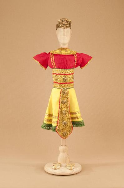 Costume folcloristico da ballerino di foggia egizia composto da veste, cintura, collo, sandali e diadema.