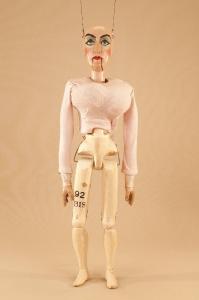 Testa di legno di tiglio fissata al corpo tramite ferro, occhi di vetro, bocca mobile. Corpo normale di donna in abete snodato in vita ad incastro. Gambe unite al bacino tramite bordione in ferro, ginocchia ad incastro mobile. Mani mobili in tiglio con dita scolpite e separate. Bilancino a croce metodo Holden.
