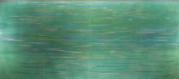 Elemento scenografico composto da un solo pezzo. Sipario in tarlatana trasparente dipinta con colori ad acqua e fortezzata lateralmente e lungo il lato inferiore raddoppiando il bordo con una fettuccia in cotone da 3 cm, mentre il bordo superiore è rinforzato con una cinghia in cotone da 6 cm.