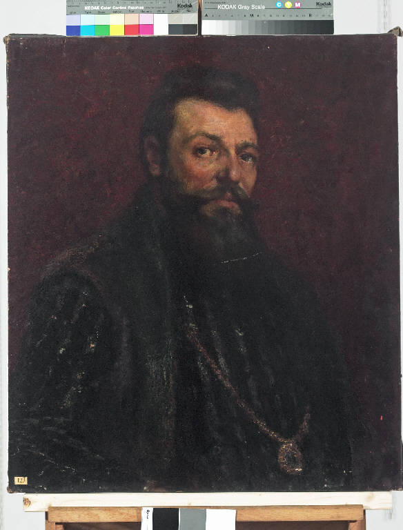 - NOTIZIE STORICO CRITICHE Antonio Pasinetti realizza un autoritratto in abiti cinquecenteschi richiamando l'iconografia del ritratto di Pietro Aretino eseguito da Tiziano.
