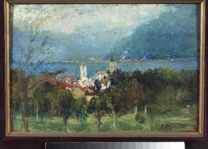 - NOTIZIE STORICO CRITICHE Il pittore bresciano coglie lo scorcio del lago di Pusiano e, nell'enfasi della creazione, la rappresentazione si traduce in impasti densi che delineano una sagoma del borgo e accennano i monti sullo sfondo.