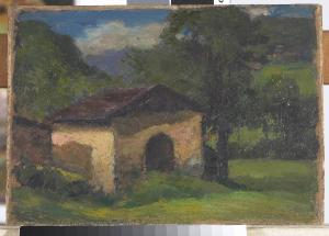 - NOTIZIE STORICO CRITICHE Antonio Pasinetti cattura la scena paesistica avvalendosi di tocchi disinvolti che indagano i toni del verde. Elementi tratti dal quotidiano, come il fienile, sono elevati a fulcro della composizione.