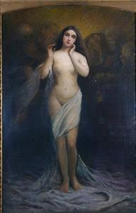 Al centro, nudo femminile a figura intera; le braccia sono piegata per portare entrambe le mani vicino al volto. Un velo appoggiato al braccio destro cinge il finaco e la coscia sinistra per poi ricadere a terra. Sullo sfondo, figure umane appena accennate.