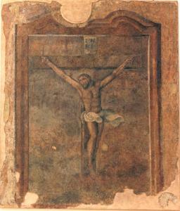 Raffigurazione di Cristo crocifisso entro bordura.