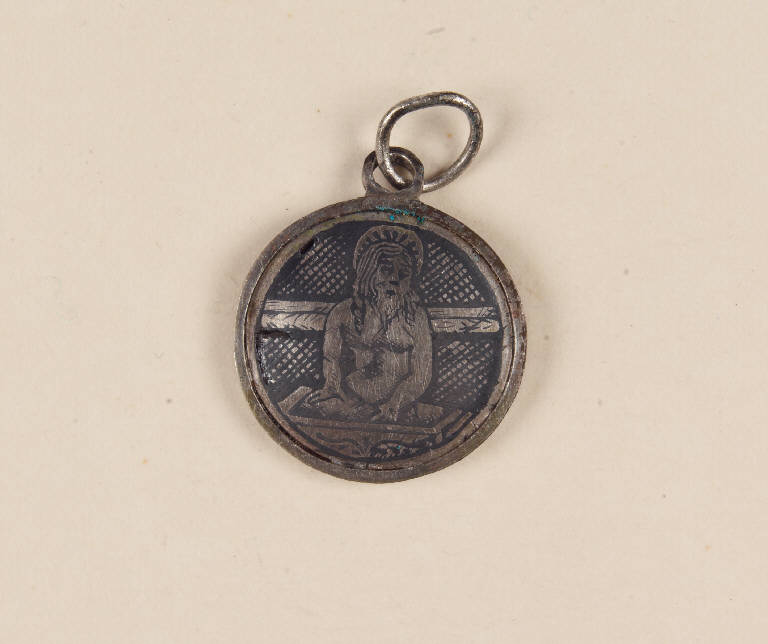 - NOTIZIE STORICO CRITICHE La medaglia, che presenta un anellino in alto, porta due lastrine niellate su entrambi i lati: da una parte una Madonna con Bambino, dall'altra un'Imago pietatis. E' conservata su un vassoio insieme ad altri pezzi (dove è contrassegnata dal n. 20), ed è inserita dal Malaspina nel suo Catalogo del 1824 tra i nielli "de' bassi tempi".