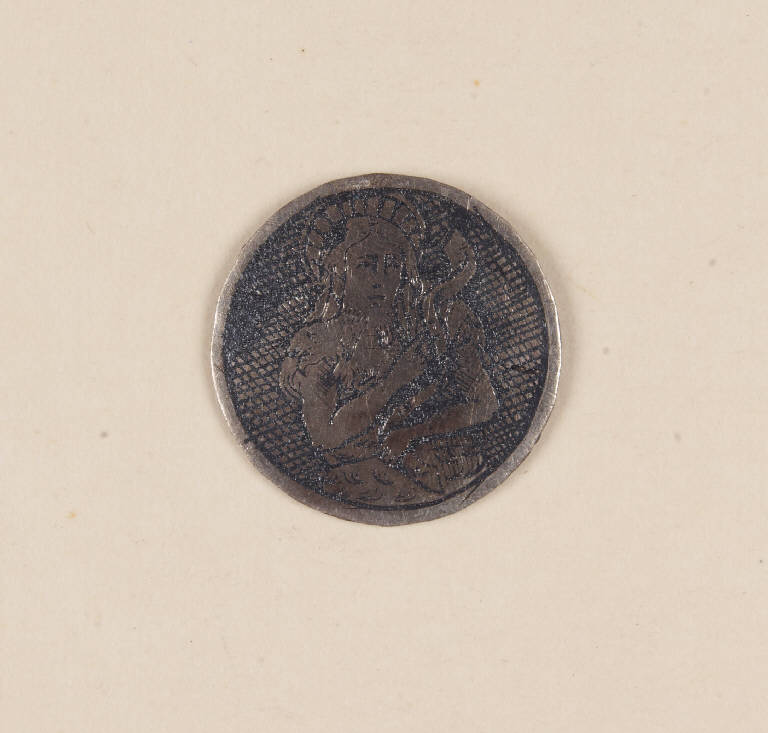 - NOTIZIE STORICO CRITICHE Il niello, conservato su un vassoio insieme ad altri pezzi e contrassegnato su di esso dal n. 26, è inserito dal Malaspina nel suo Catalogo del 1824 tra quelli "de' bassi tempi", perlopiù di forma tonda e di soggetto sacro, che andavano originariamente a decorare oreficerie liturgiche.