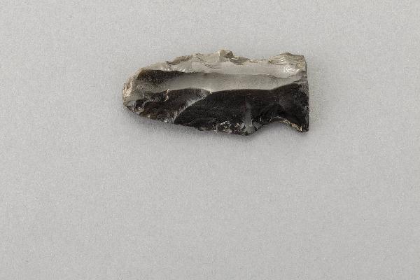 Punta di lancia su scheggia in ossidiana con lama di forma ovale allungata, tacche laterali e base retta. La faccia dorsale presenta distacchi multidirezionali che ricoprono l'intera superficie, mentra la faccia ventrale è interessata da ritocchi scagliati solo sui margini laterali.