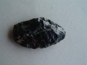 ossidiana verde/ scheggiatura a percussione/ ritocco a pressione