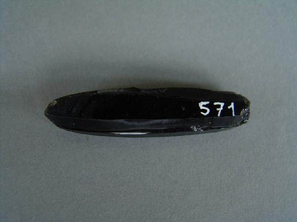 Nucleo esausto in ossidiana utilizzato per la produzione di lame prismatiche. Stacchi unidirezionali.