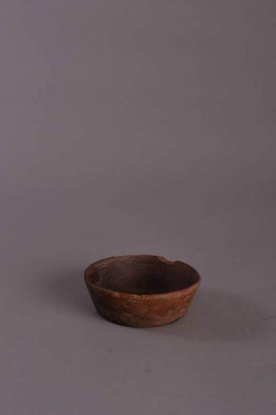 Ciotola con pareti rette divergenti. Superficie monocroma color caffé ingobbiata e lucidata.