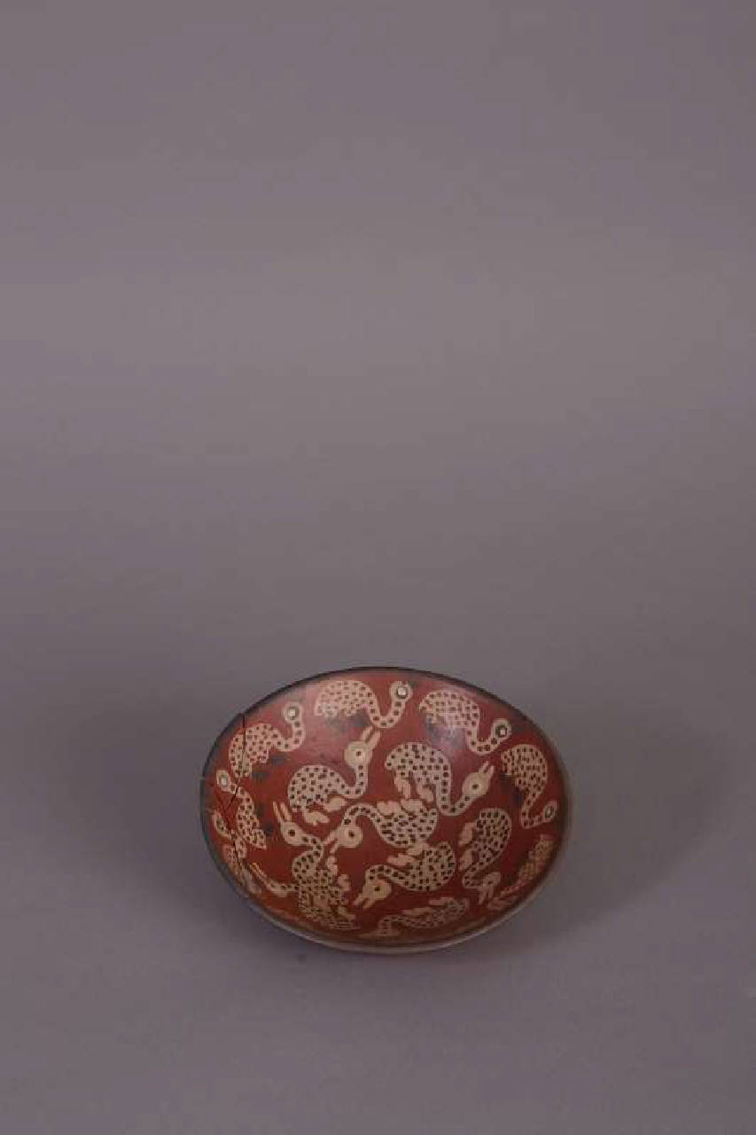Ciotola aperta a base concava decorata all'intero con una teoria di uccelli (con relativi tre frammenti).