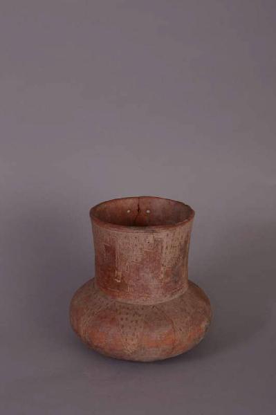 - NOTIZIE STORICO CRITICHE L'opera è simile a un esemplare ritrovato nel sito Cerro Santa Ana nella valle del Chicama e conservato al Museo Larco di Lima (https://www.museolarco.org/catalogo/ficha.php?id=16262). Le decorazioni inoltre ricordano un altro recipiente del medesimo museo (https://www.museolarco.org/catalogo/ficha.php?id=16460), proveniente sempre dalla stessa area (Chicama) ma dal sito di Barbacoa. Lo stesso motivo a stella con tratti incisi è stato rilevato anche nella fase formativa della cultura salinar.