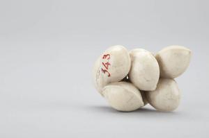 Netsuke in avorio intagliato raffigurante un gruppo di molluschi.