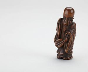 Netsuke in legno intagliato e policromato raffigurante Fukurokuju.