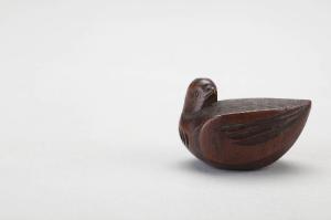 Netsuke in legno intagliato raffigurante un uccello.