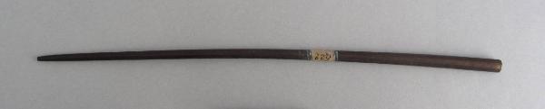 Bacchetta (per capelli?) di legno scuro leggermente curva e appuntita ad una estremità.