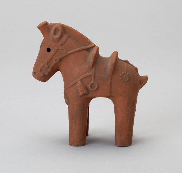 Piccola scultura in ceramica raffigurante cavallo stante.