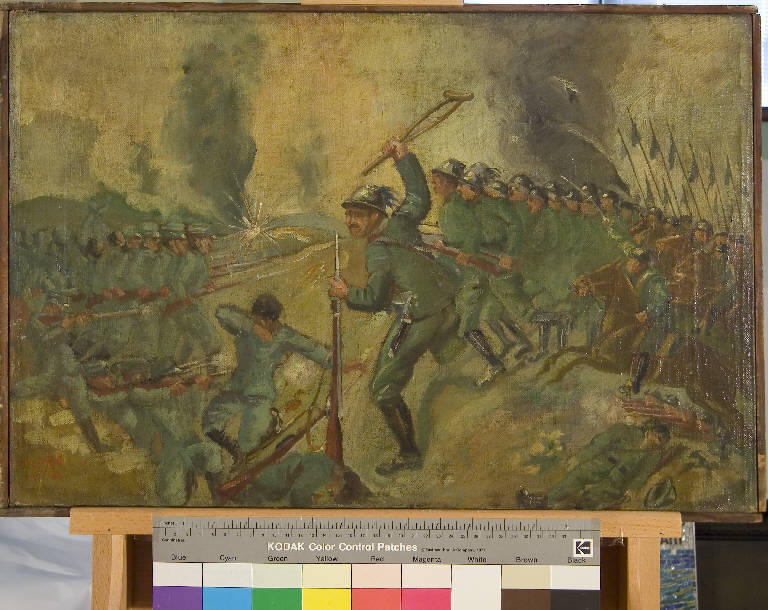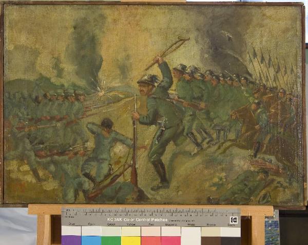 Enrico Toti: "Aspra lotta", scena di guerra. Prima Guerra Mondiale 1915-1918