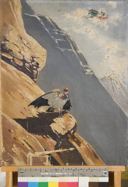 Paesaggio andino, con aereo di Antonio Locatelli. Imprese aviatorie