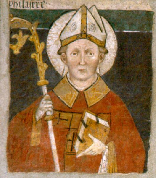 Giovane santo vescovo, a mezzo busto, frontale, privo di barba; ha in testa la mitra, nella mano destra reca il pastorale, nella sinistra un libro; nel margine superiore, resti di fasce decorative.