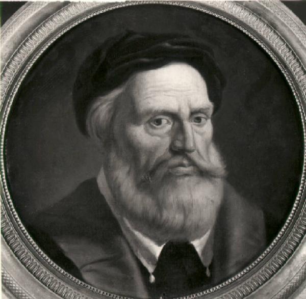 A mezzo busto Agostino Gallo con barba fluente e un cappello di velluto in testa.