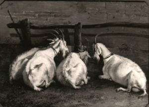 Capre nella stalla davanti alla greppia