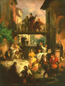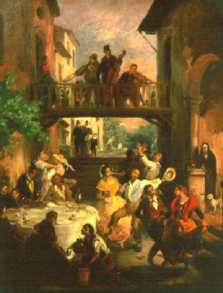 Figure di popolani che danzano ad una festa di nozze