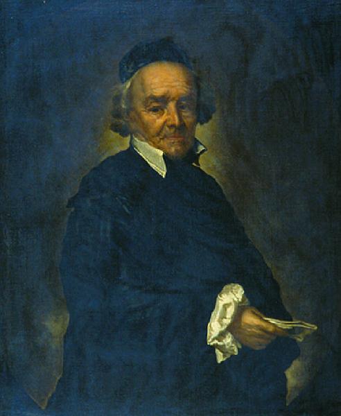 Ritratto a mezzo busto di un anziano gentiluomo raffigurato in piedi, di tre quarti verso destra, con il volto frontale; indossa una tonaca nera con collo e polsi bianchi e in testa ha la papalina; tiene nella mano destra un foglio di carta ripiegato (?).