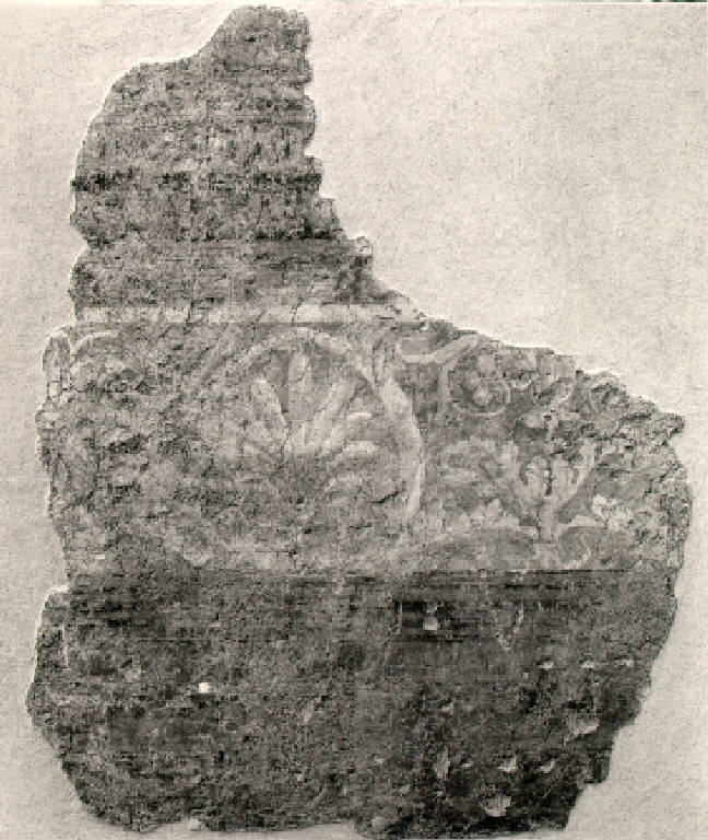 Al centro palmetta con motivi vegetali fra due fasce che imitano modanature architettoniche.