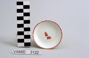 - NOTIZIE STORICO CRITICHE La foggia della ciotola con orlo crestato e il decoro privo di tridimensionalità eseguito soprasmalto indicano una datazione alla metà del Novecento. Il marchio presente sul fondo, applicato inizialmente sugli oggetti prodotti dalla Richard Ginori presso lo stabilimento di Sesto Fiorentino, iniziò ad essere usato intorno al 1930. Nei primi anni il timbro si presentava nel colore rosso e successivamente in blu e verde. Dal 1970 circa al marchio venne aggiunta la scritta "Italy". La ciotola fa parte di una donazione di privati al Museo.