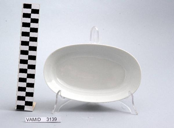 Piatto da portata ovale; fondo uniforme bianco.