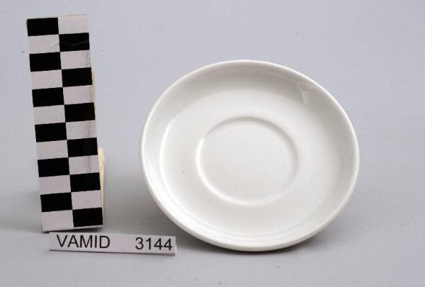 Piattino da caffè circolare di colore bianco.