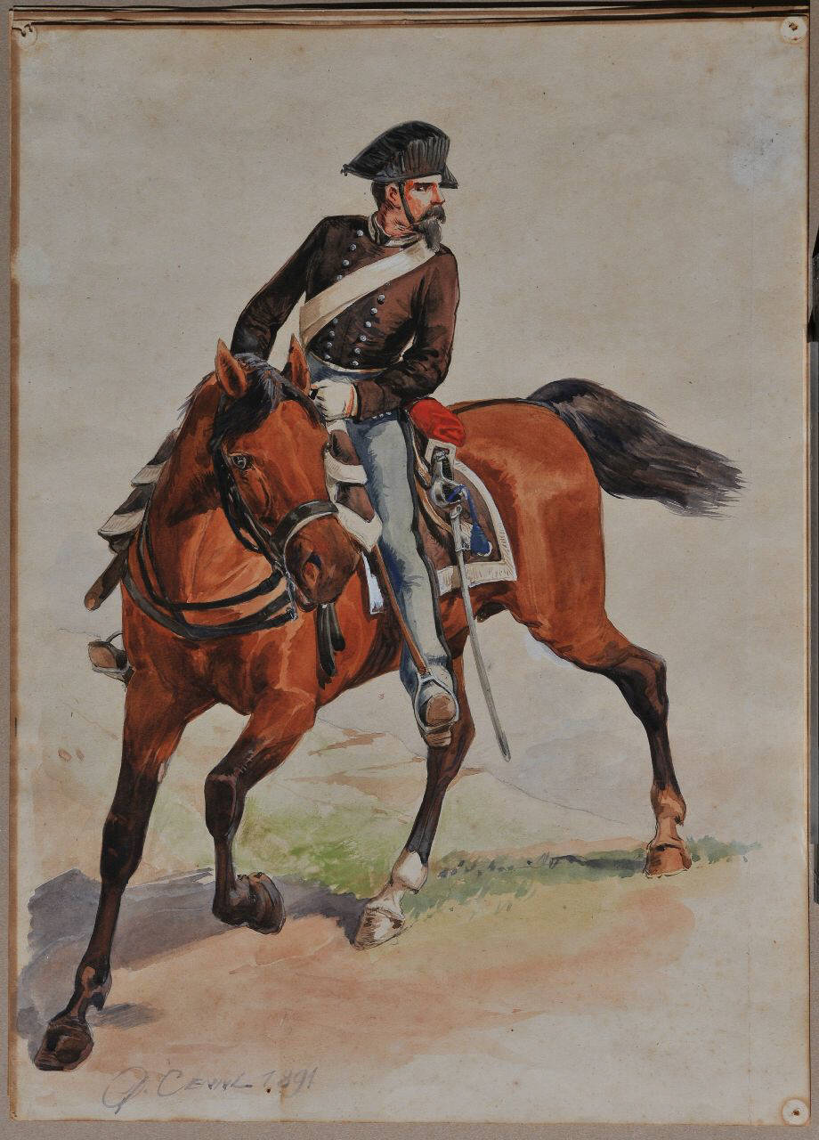 - NOTIZIE STORICO CRITICHE L'acquerello appartiene ad una raccolta di figurini militari nelle uniformi italiane. Le 20 tavole, firmate da Quinto Cenni, sonostate realizzate tra il 1889 ed il 1991.