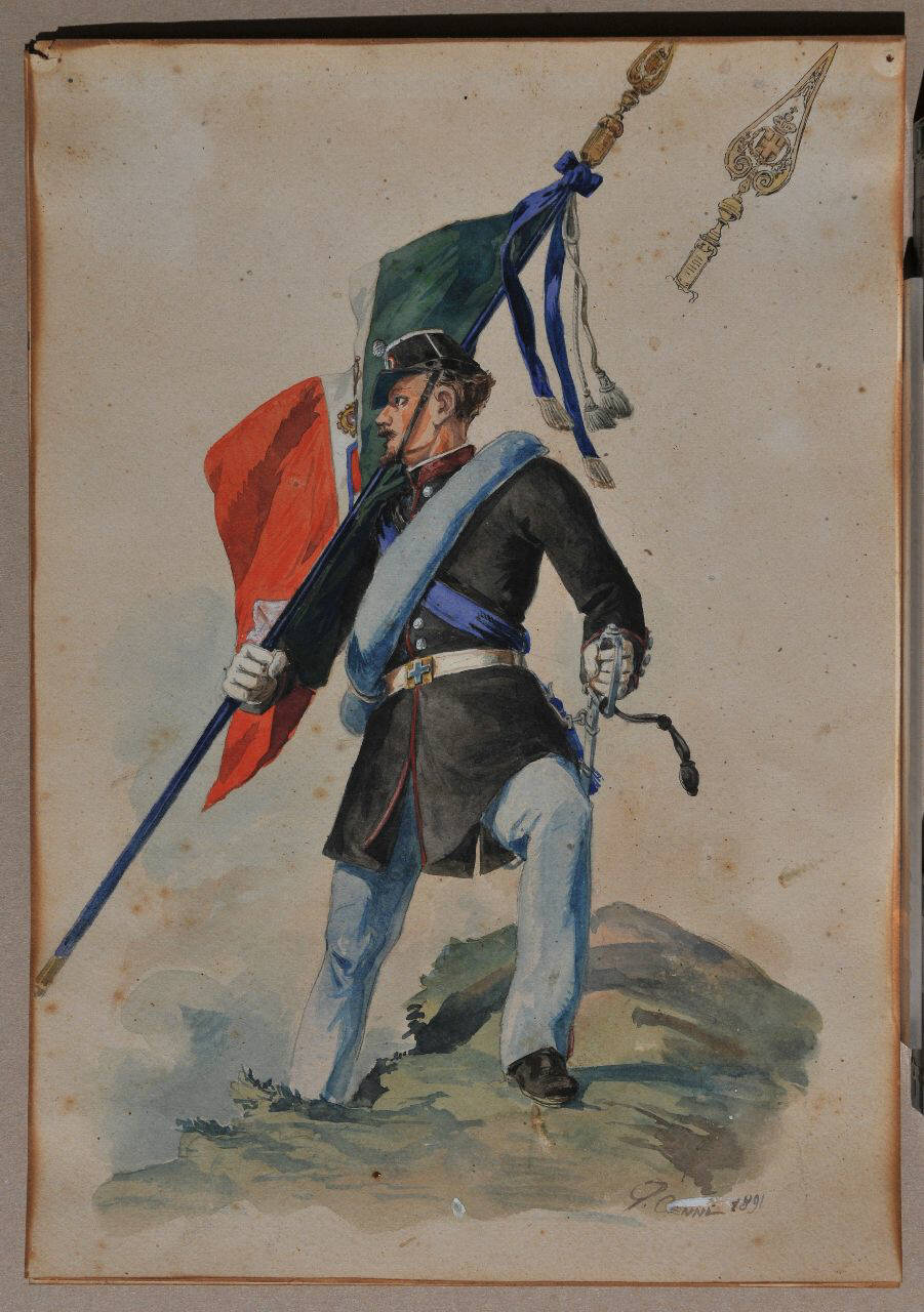 - NOTIZIE STORICO CRITICHE L'acquerello appartiene ad una raccolta di figurini militari nelle uniformi italiane. Le 20 tavole, firmate da Quinto Cenni, sonostate realizzate tra il 1889 ed il 1991.